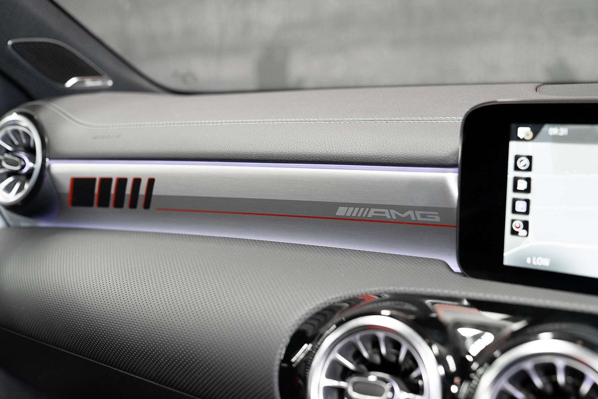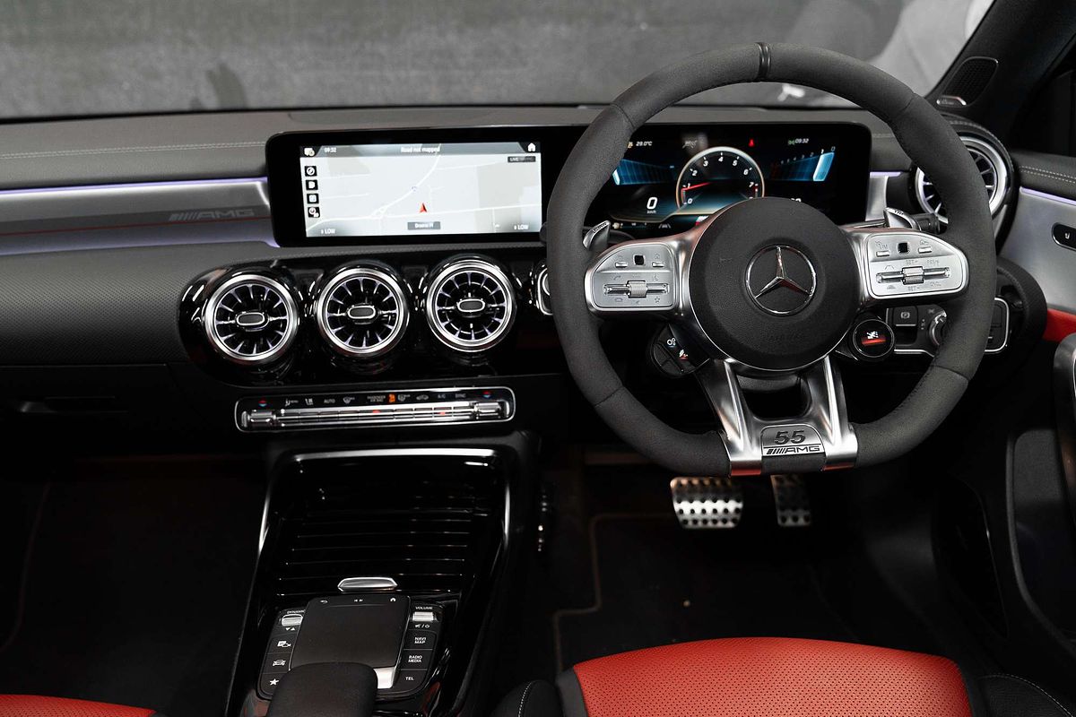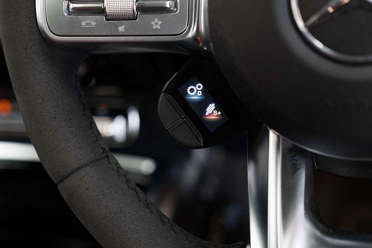 * DINAMICA MICROFIBRE-TRIMMED AMG PERFORMANCE STEERING WHEEL WITH AN "EDITION 55" BADGE AND BLACK 12 O'CLOCK MARKER